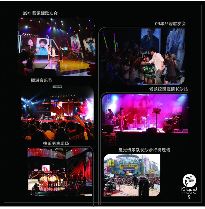 在品牌成立之前,自02年起“岛屿工作室/录音棚”就已与电视台和各FM电台有着长期的合作关系,并承办与自行举办了“橘洲”音乐节、岛屿厂牌系列演出等等。