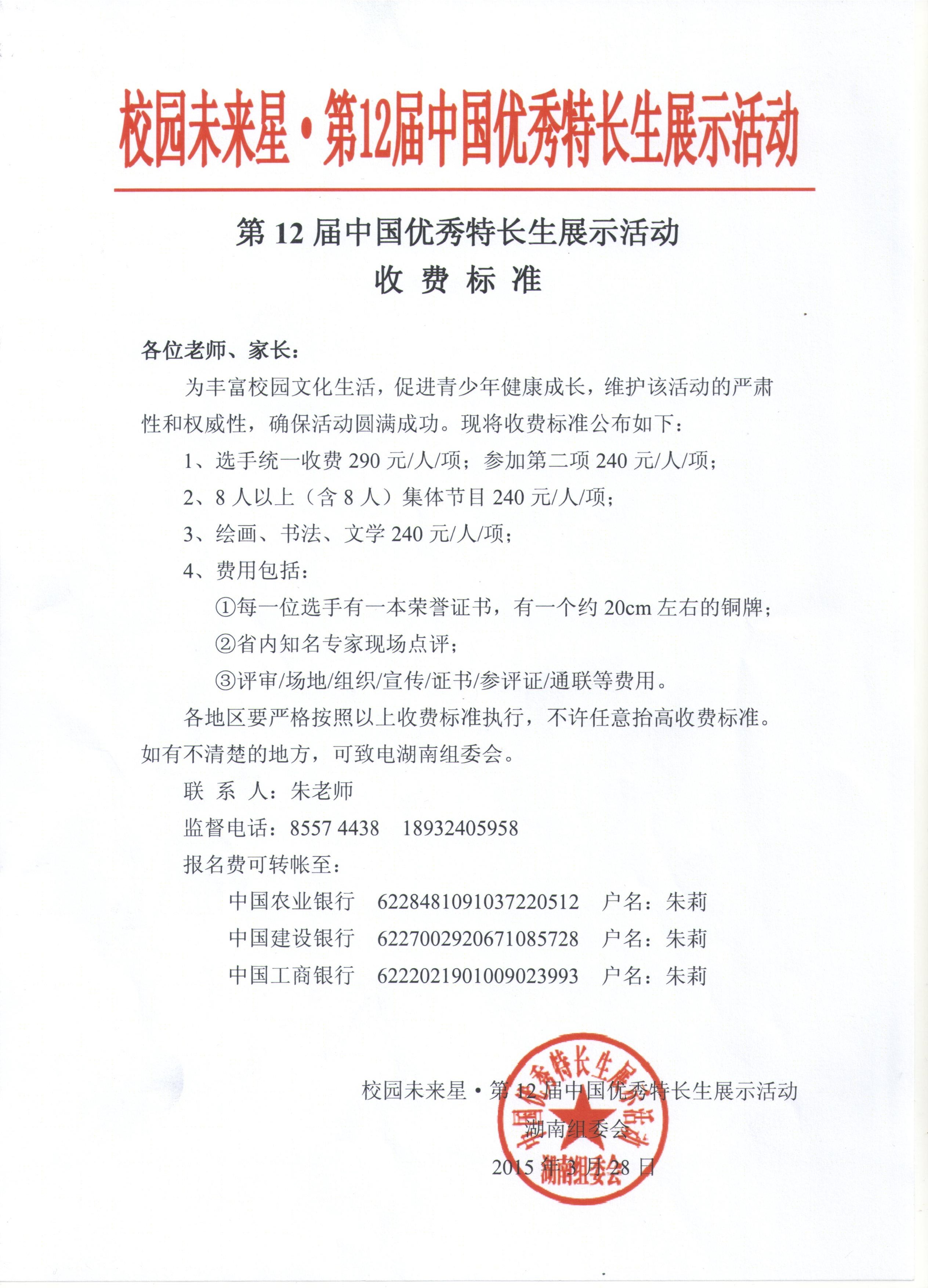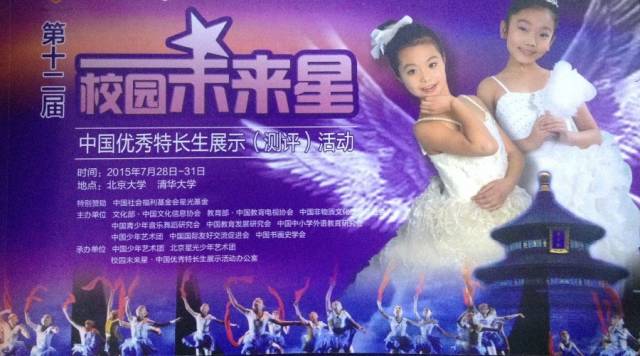 由中国社会福利基金星光基金提供赞助,文化部·中国文化信息协会、教育部·中国教育电视协会、中国青少年音乐舞蹈研究会、中国少年艺术团等单位将于2015年7月28日-31日在北京共同主办”校园未来星·第十二届中国优秀特长生展示(评测)活动”。